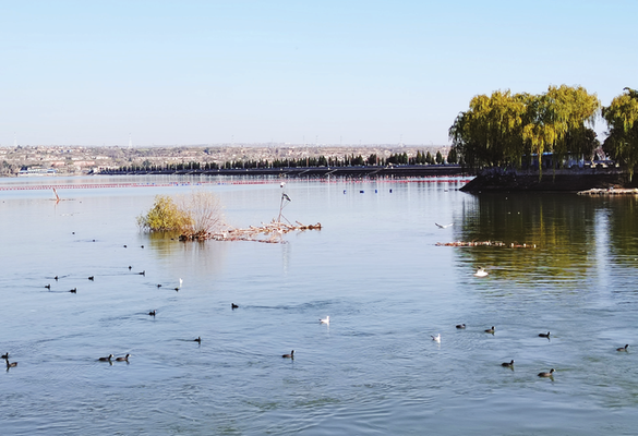 近日,記者在王家崖水庫和千渭之會國家濕地公園看到,冬日暖陽下,多種鳥類在此棲息,它們或貼近水面飛翔,或駐足停留捕食,或在水面游弋嬉戲(見上圖)??吹竭@樣的美景,一些專門來此拍照的市民紛紛舉起相機,用鏡頭定格這美好的景象。