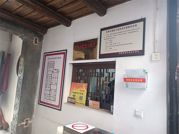 周家大院坐落于鳳翔區城關鎮文昌巷內,是一座建于明末清初的北方民宅古建四合院,也是從前鳳翔府城民居的代表,于2008年被列為陜西省文物保護單位。目前,經過精心修葺的周家大院已成為獨具特色的民俗博物館,向公眾開放。